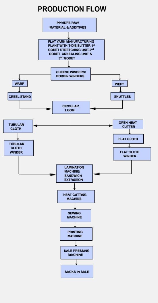The product is manufactured from HDPE or PP granules as required and is in the form of finished Circular Woven Sacks.